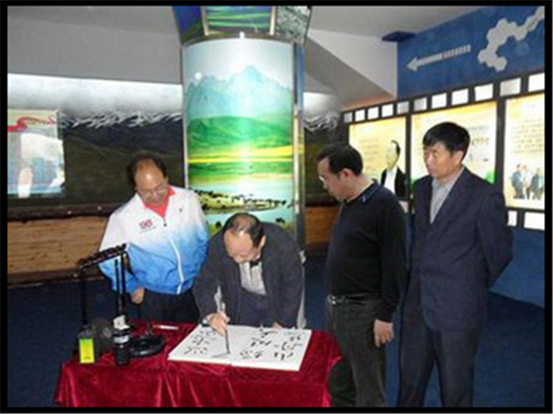 冯忠武所长一行还饶有兴趣的参观了山丹马场博物馆,对马场为国家经济建设和国防建设做出的历史贡献表示赞赏,并欣然题词留念“山丹马场明天更美好”。